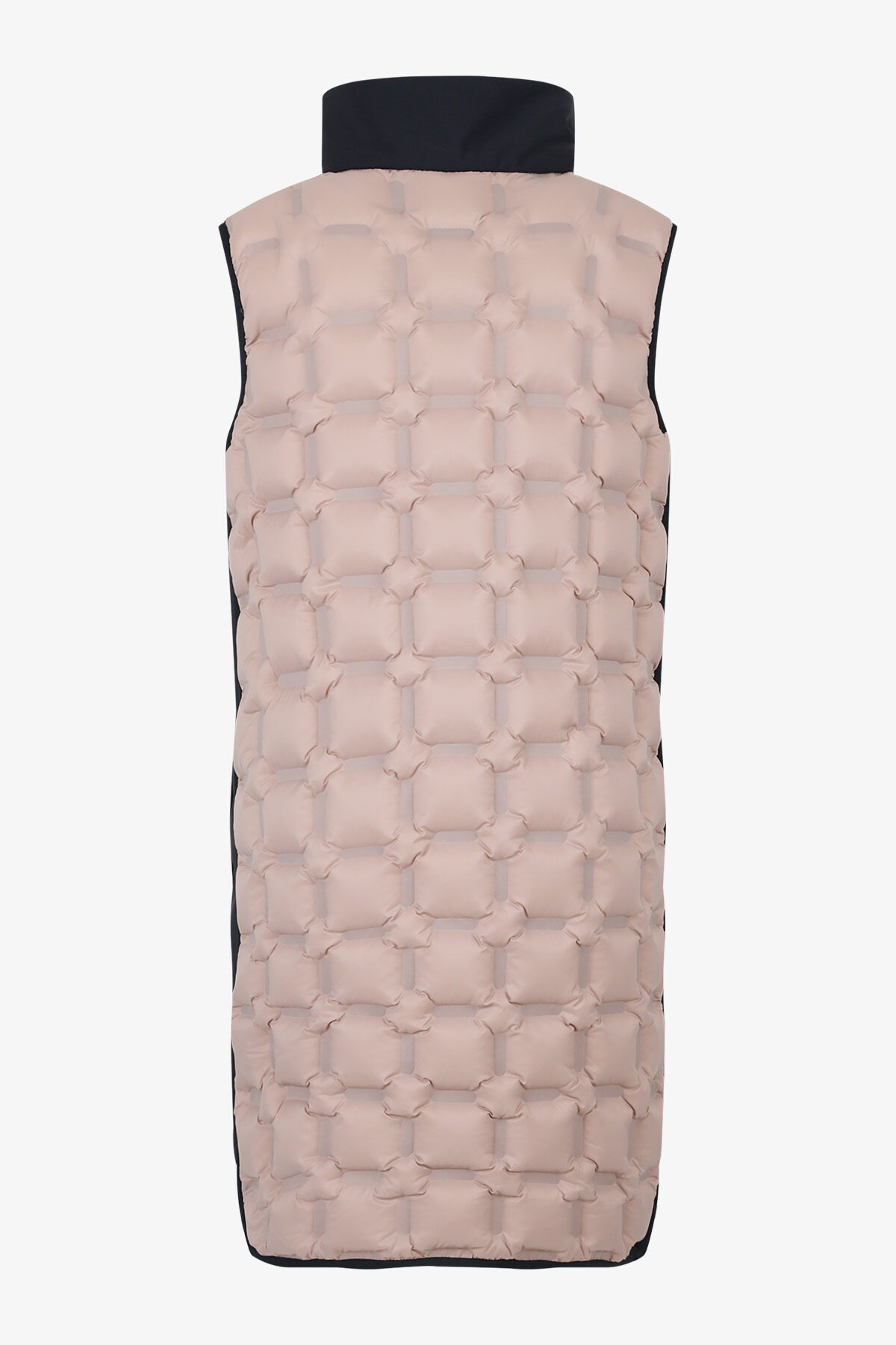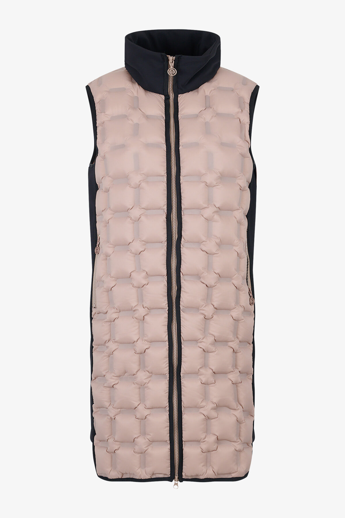 Die extravagante Weste mit Stehkragen in A-Shape sorgt garantiert für Aufsehen. Sie bietet wärmende Füllwatte und kombiniert modischen Stil mit Funktionalität, ideal für kühle Tage und besondere Anlässe.